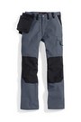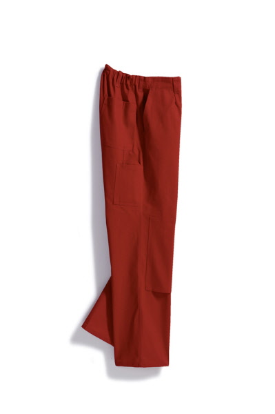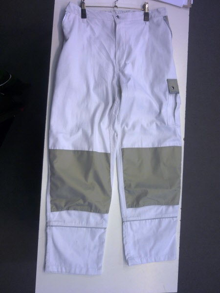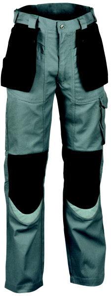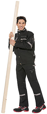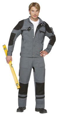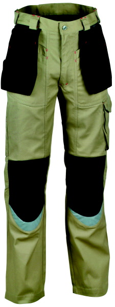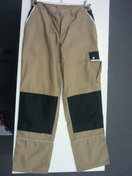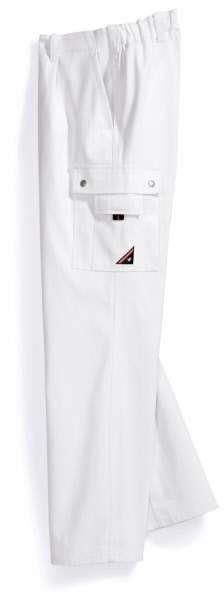 60% Baumwolle, 40% Polyester, Gummizug im Rücken, Bundfalten, breite Gürtelschlaufen für Gürtel bis ca. 5 cm Breite, 2 Seitentaschen, 1 verschließbare Gesäßtasche von innen verstärkt, 2 Schenkeltaschen, davon 1 mit aufgesetzter Handy-Tasche und 1 mit integrierter Zollstocktasche, Farben: dunkelblau, königsblau,weiß, schwarz, sand, dunkelgrau und rot
