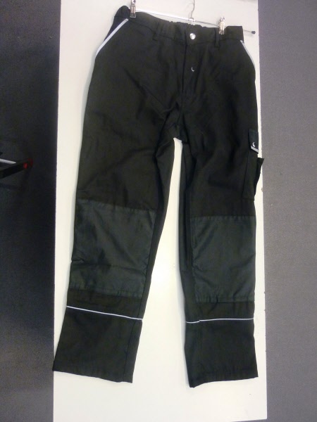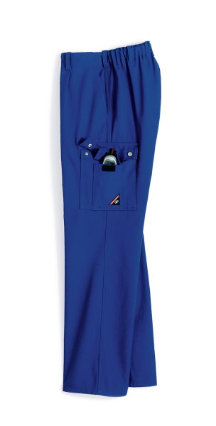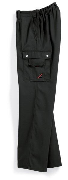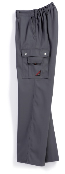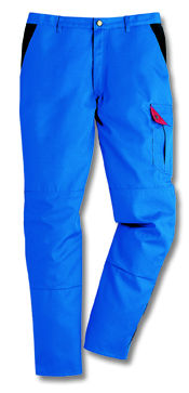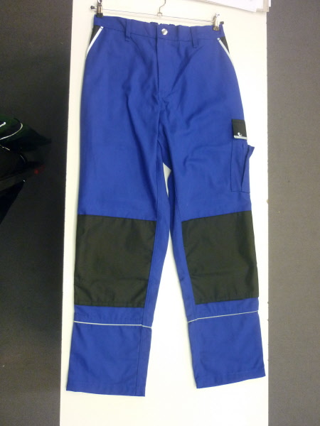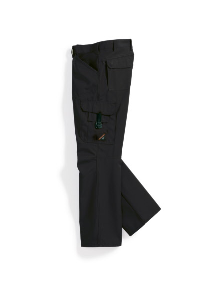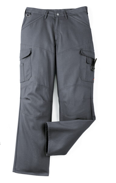 60% Baumwolle, 40% Polyester, Gummizug im Rücken, Bundfalten, breite Gürtelschlaufen für Gürtel bis ca. 5 cm Breite, 2 Seitentaschen, 1 verschließbare Gesäßtasche von innen verstärkt, 2 Schenkeltaschen, davon 1 mit aufgesetzter Handy-Tasche und 1 mit integrierter Zollstocktasche, Farben: dunkelblau, königsblau,weiß, schwarz, sand, dunkelgrau und rot