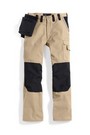 100% Diagonal Baumwolle, Latzhose mit Cargotasche, Handytasche und Knietaschen, Brustlatztasche mit verdecktem Reißverschluss, zusätzlich aufgesetzte Brustlatztasche mit Patte und 2 Druckknöpfen, Clippy Schnellverschluss, elastische Latzträger, Bundweite seitlich mit je 2 Knöpfen regulierbar, Hüftweite durch Taillengummi verstellbar, 2 integrierte Eingrifftaschen, Metallreißverschluss im Hosenschlitz, 2 verstärkte Gesäßtaschen mit Patte und Klett, 1 Cargotasche, doppelte Zollstocktasche mit integreierter Handytasche am rechten Bein, Knietaschen für Einschubkissen nach DIN EN 14404 Typ 2 Level 1